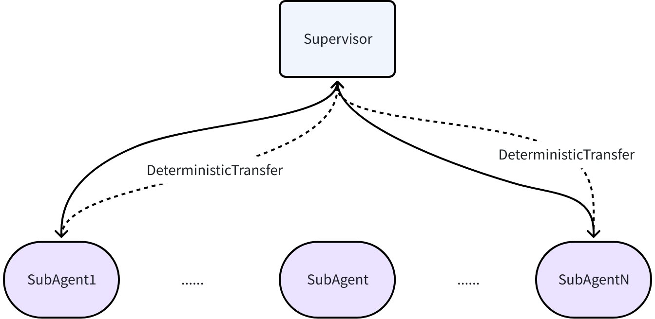 In Supervisor mode, after a sub-Agent finishes execution, it returns to the Supervisor, and the Supervisor generates the next task target. In this case, AgentWithDeterministicTransferTo can be used: