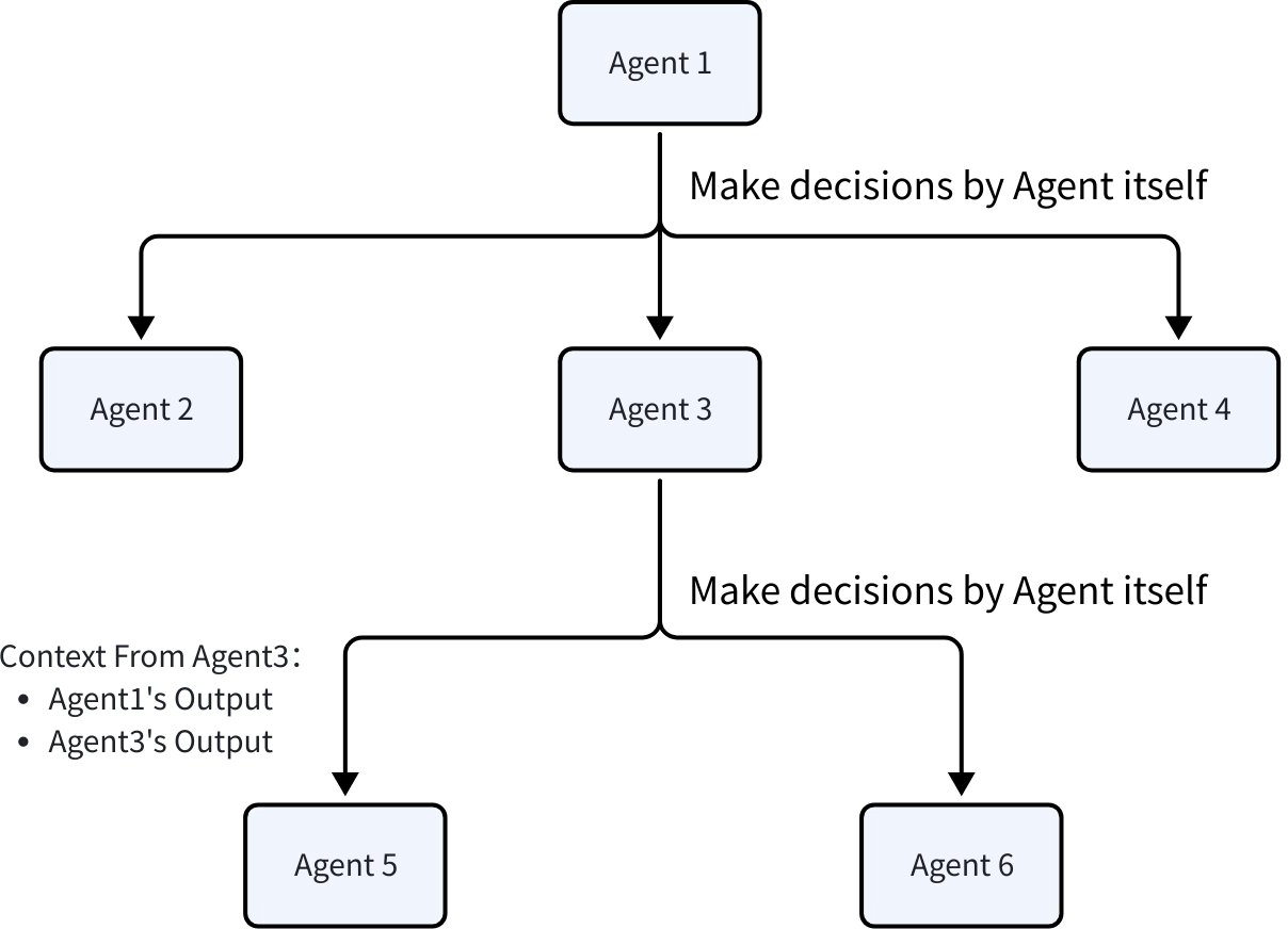 Context Strategy Description Upstream Agent Full Dialogue Get the complete conversation history of the upstream Agent New Task Description Ignore the complete conversation history of the upstream Agent and provide a new task summary as the AgentInput for the sub-Agent - Decision Autonomy